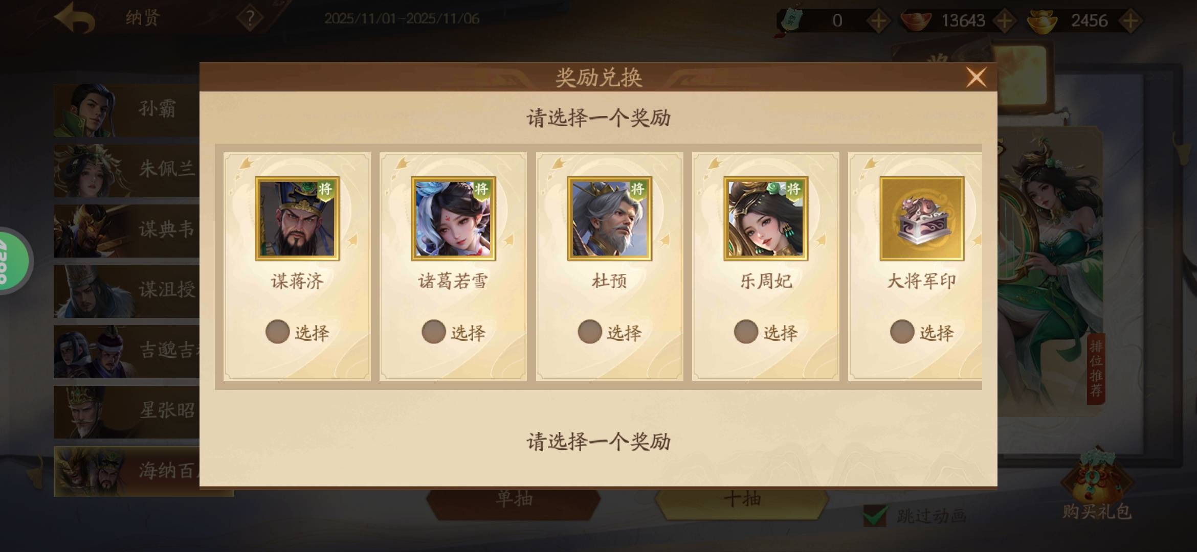 星曹仁提前几发出了,剩下4个选哪个